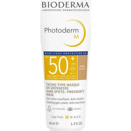 DescriptionLa Crème Solaire Teintée Dorée Protectrice Photoderm M SPF 50+ des laboratoires Bioderma est un écran solaire très haute protection indice 50+ spécialement conçu pour les peaux hyperpigmentées de type masque de grossesse chez le femme enceinte. Avec son association exclusive de filtres dermatologiques UVA/UVB, Photoderm M offre une protection optimale contre les méfaits des UV (coups de soleil, intolérances solaires,…) ainsi qu’une véritable protection biologique interne : brevet exclusif Bioprotection Cellulaire. Ce brevet active les défenses naturelles de la peau, protége les cellules et lutte contre le vieillissement cutané prématuré.Par sa protection renforcée contre le rayonnement visible et son actif spécifique anti-tache, Bioderma Photoderm M SPF 50+ Crème Solaire Teintée Dorée Protectrice minimise les risques de pigmentation et atténue les taches. Sa teinte dorée unifie immédiatement le teint et atténue les imperfections. Sans paraben ni parfum, la Crème Solaire Teintée Photoderm M est hypoallergénique, photostable, non comédogène, elle a une très bonne tolérance et résiste à l’eau.UtilisationUtiliser au quotidien toute l’année Bioderma Photoderm M SPF 50+ Crème Solaire Teintée Dorée Protectrice pour minimiser les risques de pigmentation. Appliquer sur le visage le matin après la crème de jour. En cas d’exposition solaire, appliquer avant l’exposition solaire uniformément et généreusement (une quantité réduite de produit diminue le niveau de protection solaire). Renouveler fréquemment l’application avant et après chaque bain, frottement ou activité sportive.Usage Externe. Appliquer sur une peau saine. Ne pas exposer les enfants de moins de 3 ans. Les bébés et les jeunes enfants ne doivent pas être exposés au soleil directement – La meilleure protection est vestimentaire, pour tous et spécialement les enfants (T-Shirt, casquette, et lunettes de soleil) – Les coups de soleil sont dangereux, surtout chez l?enfant – Evitez l?exposition entre 12 et 16 heures.CompositionAqua/Water/Eau, Octocrylene, Dicaprylyl Carbonate, Methylene Bis-Benzotriazolyl Tetramethylbutylphenol (Nano), Butyl Methoxydibenzoylmethane, Titanium Dioxide (CI 77891 ), Hydrogenated Palm Kernel Glycerides, Bis-Ethylhexyloxyphenol Methoxyphenyl Triazine, Butylene Glycol, Hydroxypropyl Dimethicone Behenate, Potassium Cetyl Phosphate, Methylpropanediol, Cyclopentasiloxane, Glyceryl Stearate, Peg-100 Stearate, Iron Oxides (CI 77492), Decyl Glucoside, Hydrogenated Palm Glycerides, Cyclohexasiloxane, Pentylene Glycol, Tocopheryl Acetate, Ammonium Acryloyldimethyltaurate/Vp Copolymer, Xanthan Gum, Iron Oxides (CI 77491), Disodium Edta, Iron Oxides (CI 77499), 1,2-Hexanediol, Caprylyl Glycol, Citric Acid, Mannitol, Xylitol, Disodium Stearoyl Glutamate, Rhamnose, Propylene Glycol, Aluminum Hydroxide, Ectoin, Glycyrrhiza Glabra (Licorice) Root Extract, Tocopherol (BI 711).