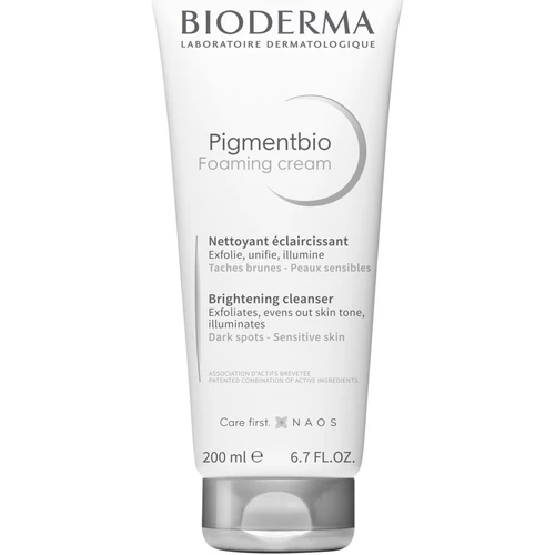 Pigmentbio Foaming cream (crème moussante) est un nettoyant éclaircissant qui favorise la disparition des taches brunes et prévient leur réapparition. Riche en AHA et en micro-billes exfoliantes, il