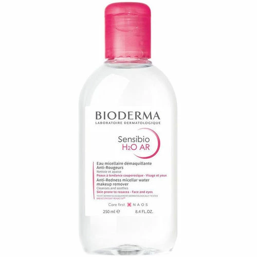 SENSIBIO H2O solution micellaire anti-rougeurs de Bioderma. Eau micellaire nettoyante qui démaquille et nettoie le visage et les yeux et aide à réduire et prévenir les rougeurs. Adoucit et décongestionne la peau. Sa formule imite la composition naturelle de la peau pour la respecter, y compris les plus sensibles. Les acides gras qui composent les micelles sont similaires aux phospholipides des membranes cellulaires de la peau et participent à la reconstruction naturelle du film hydrolipidique de la peau. Appliquer matin le soir à l’aide de coton sur le visage.