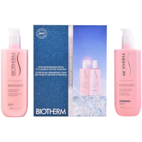 Cosmétique Biotherm. BIOSOURCE DUO COFFRET 2 PIÈCES : LAIT DÉMAQUILLANT 200ML + BIOCILS DÉMAQUILLANT EXPRESS YEUX 125ML. Peaux sèches